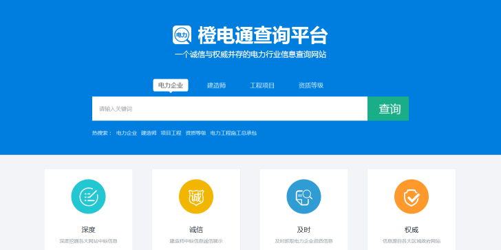橙電通能為全國電力工程企業(yè)提供豐富、及時的電力行業(yè)信息查詢,包括企業(yè)基本信息、信用評價、信用認(rèn)證、信用違規(guī)、中標(biāo)情況、經(jīng)營信息、榮譽(yù)信息、建造師、資質(zhì)等級等多方面內(nèi)容。橙電通信息實時更新,目前有接近100萬條的數(shù)據(jù),其全部來源于國家住房和城鄉(xiāng)建設(shè)部全國建筑市場誠信信息平臺、國家電網(wǎng)、南方電網(wǎng)、各省市工程交易中心、征信平臺等權(quán)威數(shù)據(jù)。橙電通電力征信系統(tǒng)能為電力工程企業(yè)查詢合作企業(yè)的誠信檔案,快速了解企業(yè)實力與經(jīng)營狀況,公正、公開、真實的數(shù)據(jù),為企業(yè)的經(jīng)營保駕護(hù)航。