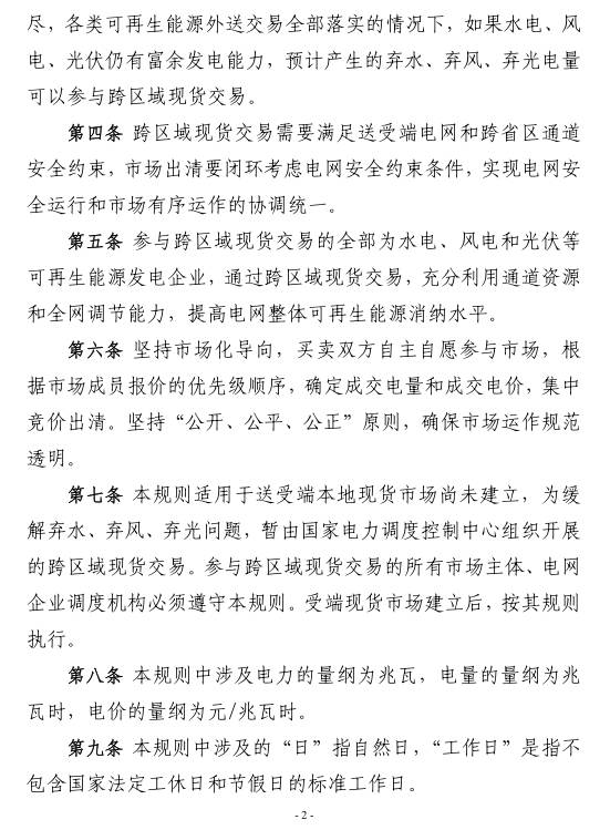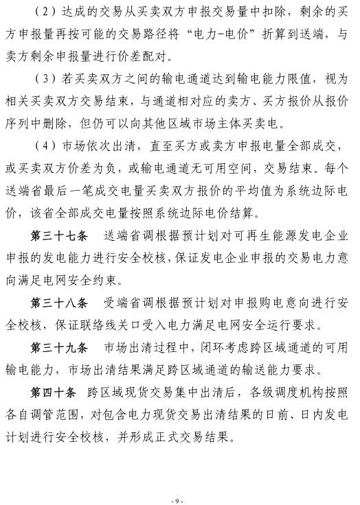 關于發(fā)布《跨區(qū)域省間富裕可再生能源電力現(xiàn)貨試點規(guī)則(試行)》的公告