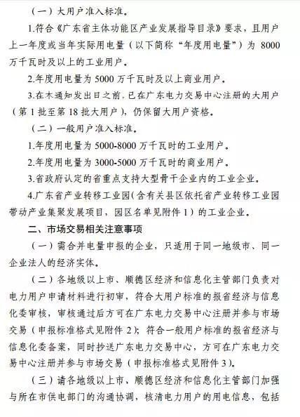 已在廣東電力交易中心注冊的大用戶(第1批至第18批大用戶),仍保留大用戶資格。省政府認定的省重點支持大型骨干企業(yè)內的工業(yè)企業(yè)和廣東省產業(yè)轉移工業(yè)園的工業(yè)企業(yè)保留一般用戶資格。