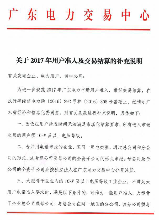 2016年11月28日,廣東省發(fā)布《關于2017年電力用戶參與市場交易相關事項的通知》。此后廣東省又發(fā)布了《關于2017年用戶準入及交易結算的補充說明》、《關于支持有色金屬企業(yè)參與電力直接交易的通知》、《廣東省經濟和信息化委關于電力用戶參與直接交易相關事項的通知》,來明確電力用戶參與直接交易的準入標準。