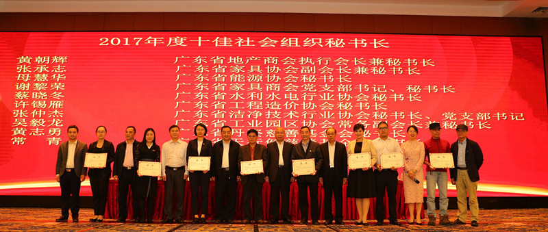 2018年3月29日,廣東省社會(huì)組織總會(huì)三屆三次會(huì)員大會(huì)暨表彰大會(huì)在廣州東方賓館隆重召開(kāi)。廣東省民政廳黨組成員、巡視員,廣東省社會(huì)組織黨委書記王長(zhǎng)勝,以及廣東省社會(huì)組織管理局局長(zhǎng)、廣東省社會(huì)組織黨委副書記莊侃出席會(huì)議并為先進(jìn)獎(jiǎng)項(xiàng)單位及個(gè)人頒牌,我協(xié)會(huì)母慧華秘書長(zhǎng)及相關(guān)人員參加會(huì)議并接受頒牌。