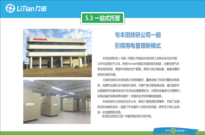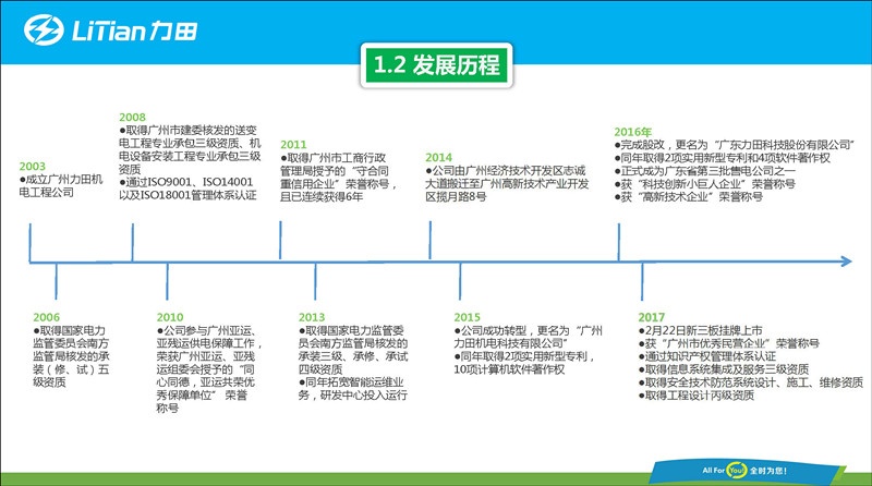 廣東力田科技股份有限公司成立于2003年,在業(yè)內(nèi)享有盛名。 隨著新一輪電力體制改革的深入推進(jìn),力田科技積極響應(yīng)國家政策號召,從傳統(tǒng)電力工程企業(yè)轉(zhuǎn)型為新型綜合能源服務(wù)企業(yè),形成用電咨詢、電力設(shè)計(jì)、項(xiàng)目實(shí)施、智能運(yùn)維、電能服務(wù)、用電改造升級、光伏、儲能、能源管理全產(chǎn)業(yè)鏈閉環(huán),致力于向大型工廠、工業(yè)園區(qū)、商業(yè)項(xiàng)目、公共設(shè)施、數(shù)據(jù)中心、房地產(chǎn)等領(lǐng)域提供智能電力和智慧能源綜合解決方案,技術(shù)服務(wù)水平達(dá)到國內(nèi)先進(jìn)水平,綜合競爭力在業(yè)內(nèi)處于領(lǐng)先地位。