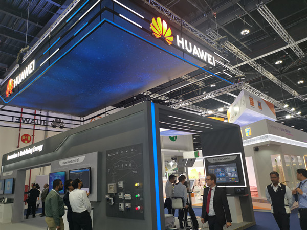 ▲華為展廳,展出全球領(lǐng)先的泛在電力物聯(lián)網(wǎng)解決方案