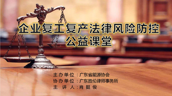 5月8日上午9:00—12:00,由廣東省能源協(xié)會主辦,廣東勝倫律師事務所協(xié)辦的能源(電力)企業(yè)復工復產(chǎn)法律風險防控講座在釘釘直播間順利開播。這也是我們繼防疫培訓、安全生產(chǎn)培訓后的又一次線上公益直播課。參與學習的部分企業(yè)表示:協(xié)會近期提供的系列優(yōu)質(zhì)公益在線學習課程已成為企業(yè)和個人知識吸取的主流渠道。
