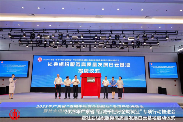 現(xiàn)場舉行了廣東省百城千社萬企助就業(yè)專項行動白云基地和社會組織服務(wù)高質(zhì)量發(fā)展白云基地的揭牌啟動儀式。