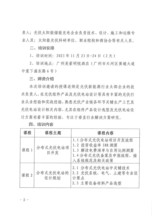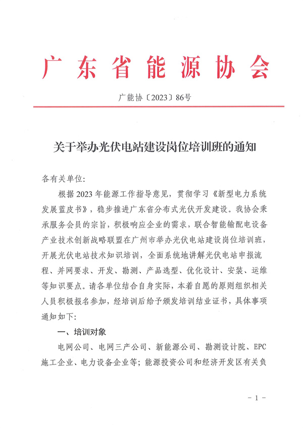 關(guān)于舉辦光伏電站建設(shè)崗位培訓(xùn)班的通知