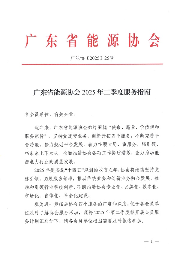 廣東省能源協(xié)會(huì)2025年二季度服務(wù)指南