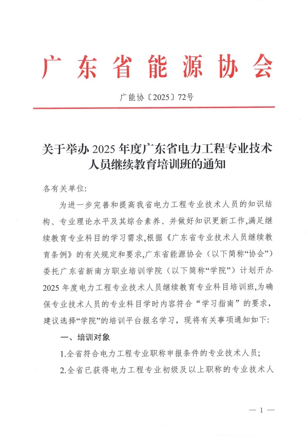 關(guān)于舉辦2025年度廣東省電力工程專業(yè)技術(shù)人員繼續(xù)教育培訓(xùn)班的通知